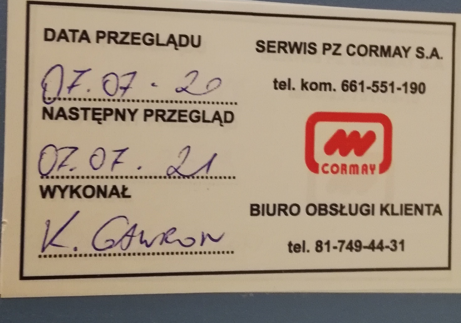 Sprawny, serwisowany, w ciągłej eksploatacji.