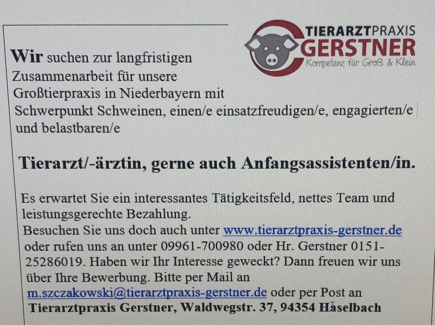 Profil Firmy można obejrzeć pod linkiem www.tierarztpraxis-gerstner.de zajmujemy się w 95% świniami a resztę 5% to tak wszystko potroche! jesteśmy największa weteryniarnia na terenie Bavari!