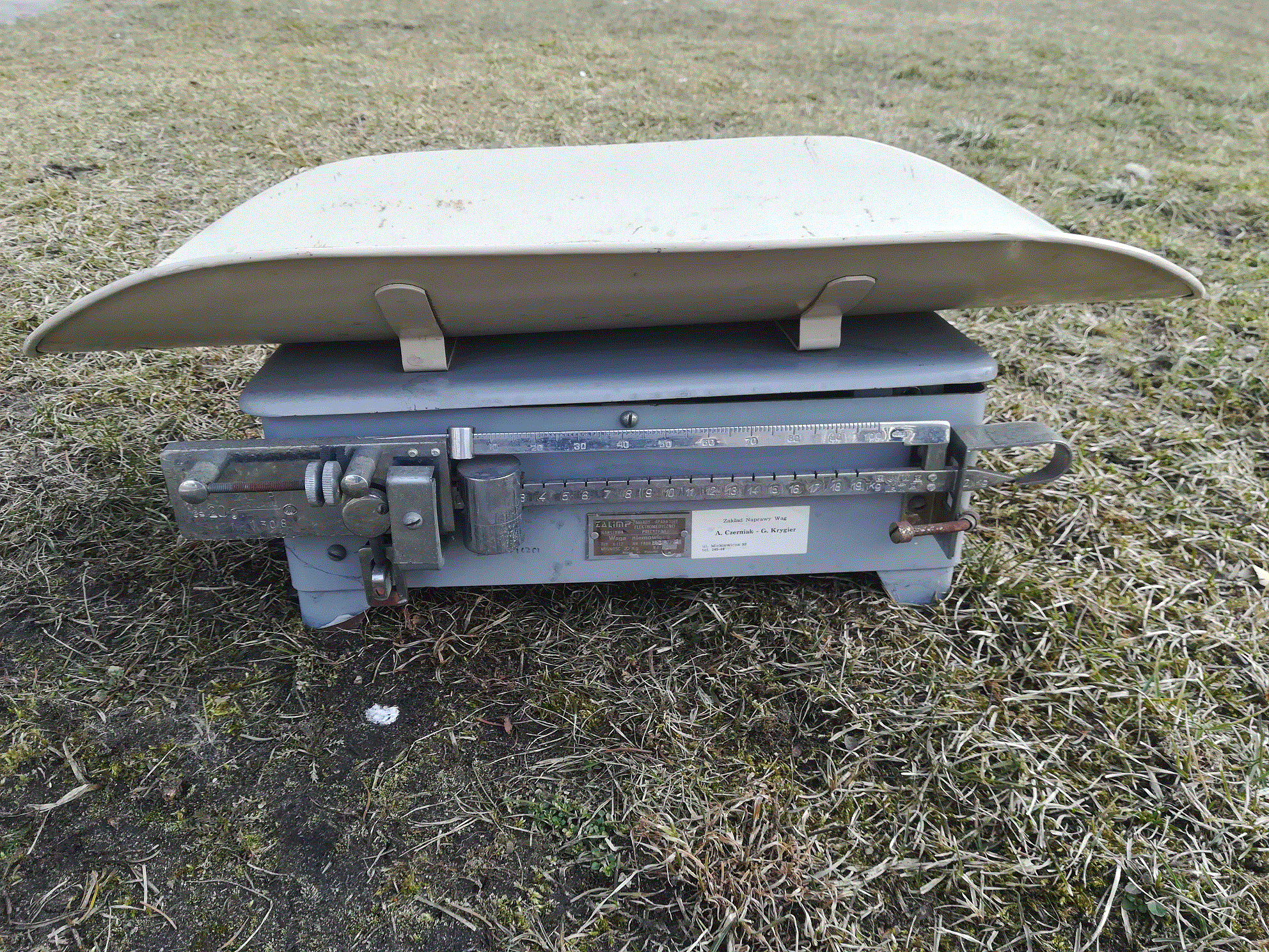 Waga niemowlęca z okresu PRL. Rok produkcji 1979. Sprawa. Firma Zalimp. Stan dobry.